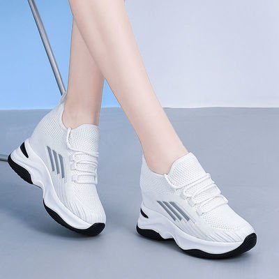 透氣內增高小白鞋女